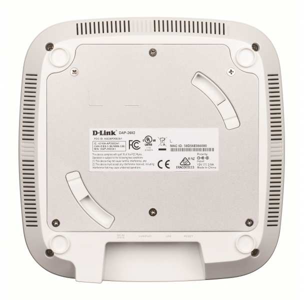 D-Link Wireless AC2300 Wave 2 Dual-Band PoE Access Point. Maximum data transfer rate 1700 Mbit/s, Maximum data transfer rate (2.4 GHz) 600 Mbit/s, Maximum data transfer rate (5 GHz) 1700 Mbit/s. Security algorithms 64-bit WEP,128-bit WEP,WPA2, Service Set Identifier (SSID) features SSID broadcast. Management protocols Telnet, SSH. AC input voltage 12 V, Input current 2.5 A, Power consumption (max) 15.5 W. Placement Ceiling, Wall, Product colour White, LED indicators Power, Status