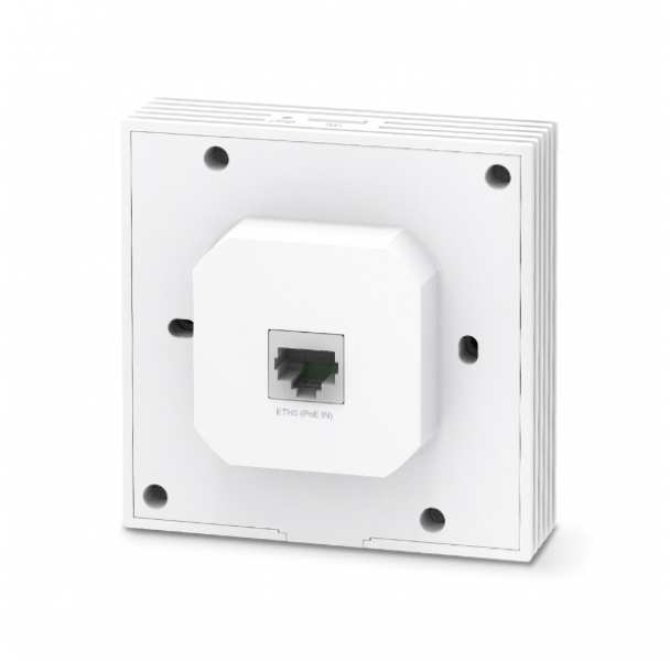 TP-Link AX3000 Wall Plate WiFi 6 Access Point. Maximum data transfer rate 3000 Mbit/s, Maximum data transfer rate (5 GHz) 2402 Mbit/s, Ethernet LAN data rates 10,100,1000 Mbit/s. Security algorithms SNMP, SSH, WPA-Enterprise, WPA2-Enterprise. Power consumption (typical) 11.5 W. Placement Wall, Product colour White, Certification CE, RoHS. Antenna type Internal
