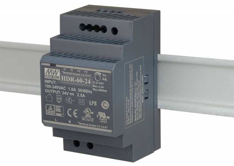 Power Total power 60 W AC input voltage 85 - 264 V AC input frequency 47 - 63 Hz Input current 1.2 A Power factor 0.98 Hold time 30 ms Efficiency 90 % Power protection features Over voltage, Overload Design Product colour Black Operational conditions Operating temperature (T-T) -30 - 70 °C Storage temperature (T-T) -40 - 85 °C Operating relative humidity (H-H) 20 - 90 % Storage relative humidity (H-H) 10 - 95 % Weight & dimensions Width 52.5 mm Depth 54.5 mm Height 90 mm Other features Operating altitude 0 - 2000 m Rise time 50 ms Harmonized System (HS) code 84733020
