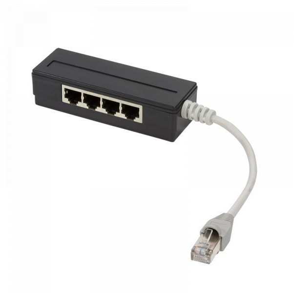 Dieser geschirmter modulare Verteiler ermöglicht den Anschluss von bis zu 4 weiteren Endgeräten an einen LAN oder Telefonanschluss.
