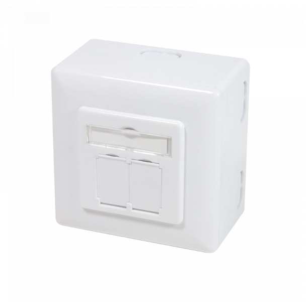 LogiLink NP0039A - RJ-45 - Metallic - White - ISO/IEC 11801 - TIA/EIA 568B.2-1 - 80 mm - 80 mm - 40 mm - Outlet Cat.6 Wall Outlet UP+AP 2xRJ45 STP - signal white - PoE - PoE+ - PoE++