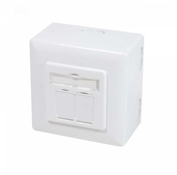 LogiLink NP0126 - RJ-45 - STP - 6a - Metallic - White - SO/IEC 11801 - TIA/EIA 568C.2 - 80 mm - Cat.6A Wall Outlet UP+AP 2x RJ45 STP - Signal White - PoE - PoE+ - PoE++