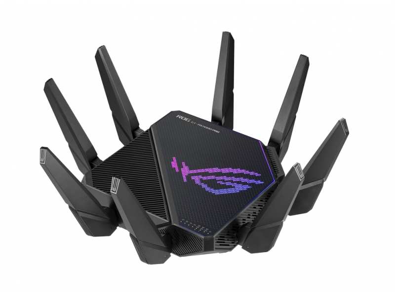 ASUS ROG Rapture GT-AX11000 Pro. WAN connection type RJ-45. Wi-Fi band Tri-band (2.4 GHz / 5 GHz / 5 GHz), Top Wi-Fi standard Wi-Fi 6 (802.11ax), WLAN data transfer rate (max) 4804 Mbit/s. Ethernet LAN interface type Gigabit Ethernet, Networking standards IEEE 802.11a, IEEE 802.11ac, IEEE 802.11ax, IEEE 802.11b, IEEE 802.11g, IEEE 802.11n. Security algorithms 64-bit WEP, 128-bit WEP, WPA-Enterprise, WPA-PSK, WPA2-Enterprise, WPA2-PSK, WPS. Product type Tabletop router, Product colour Black, LED indicators LAN, Power, USB, WAN, WLAN, WPS