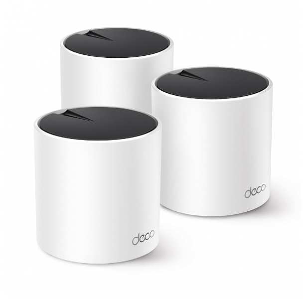 TP-Link AX3000. Product colour White, Antenna type Internal, Product type Mesh router. Wi-Fi band Dual-band (2.4 GHz / 5 GHz), Top Wi-Fi standard Wi-Fi 6 (802.11ax), Wi-Fi standards 802.11a, 802.11b, 802.11g, Wi-Fi 4 (802.11n), Wi-Fi 5 (802.11ac), Wi-Fi 6 (802.11ax). Processor frequency 1 GHz, Firewall security SPI Firewall, Transmitting power (CE) 20 - 23 dBm. Width 110 mm, Depth 110 mm, Height 114 mm. Number of products included 3 pc(s), Number of adapters included 3 pc(s)