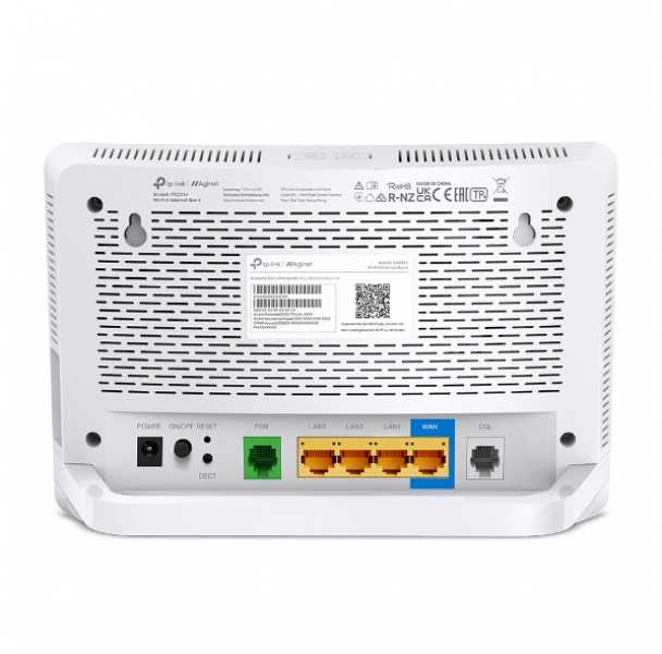 TP-Link Wi-Fi 6 Internet Box 4. WAN connection type RJ-45. Wi-Fi band Dual-band (2.4 GHz / 5 GHz), Top Wi-Fi standard Wi-Fi 6 (802.11ax), WLAN data transfer rate (max) 1775 Mbit/s. Ethernet LAN interface type Gigabit Ethernet, Ethernet LAN data rates 10,100,1000 Mbit/s, Networking standards IEEE 802.3, IEEE 802.3ab, IEEE 802.3u. Security algorithms WPA, WPA2, WPA3. Product type Tabletop router, Product colour White