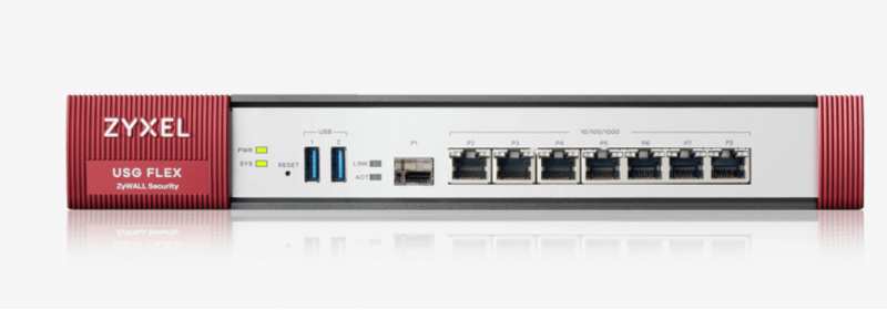 Zyxel USG Flex 500. Firewall throughput 2300 Mbit/s, VPN throughput 810 Mbit/s. Heat dissipation 82.23 BTU/h, Noise level 41.5 dB, Mean time between failures (MTBF) 529688 h. Security algorithms IPSEC,SSL/TLS, VPN support IKEv2, IPSec, SSL, L2TP/IPSec. Form factor 1U. Input current 4.17 A, Power consumption (max) 24.1 W