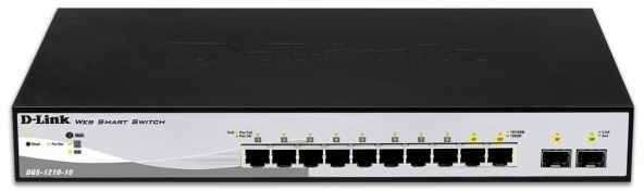 D-Link DGS-1210-10. Switch type Managed network switch, Switch layer L2. Basic switching RJ-45 Ethernet ports type Gigabit Ethernet (10/100/1000), Basic switching RJ-45 Ethernet ports quantity 8. Full duplex. MAC address table 8000 entries, Switching capacity 20 Gbit/s. Networking standards IEEE 802.3,IEEE 802.3ab,IEEE 802.3u,IEEE 802.3x. Power connector DC-in jack. Rack mounting, Form factor 1U
