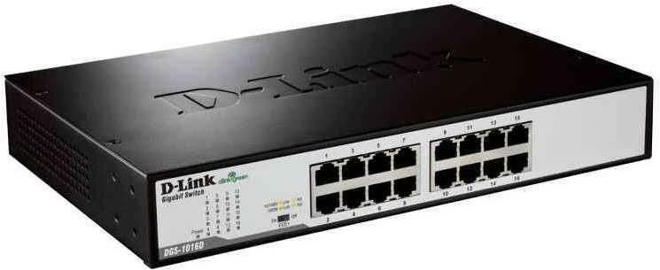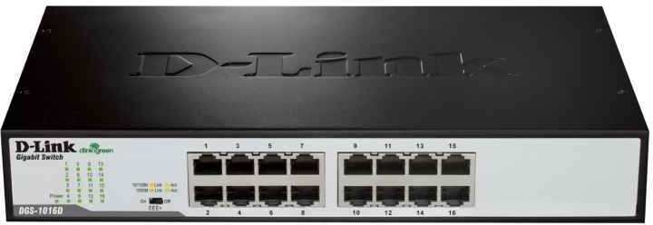 D-Link DGS-1016D/E. Switch type Unmanaged network switch. Basic switching RJ-45 Ethernet ports quantity 16. Full duplex. MAC address table 8000 entries, Switching capacity 32 Gbit/s. Networking standards IEEE 802.1p,IEEE 802.3,IEEE 802.3ab,IEEE 802.3u,IEEE 802.3x. Rack mounting