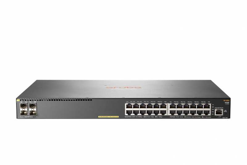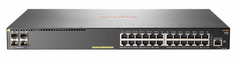 Aruba, a Hewlett Packard Enterprise company Aruba 2930F 24G PoE+ 4SFP. Switch type Managed, Switch layer L3. Basic switching RJ-45 Ethernet ports type Gigabit Ethernet (10/100/1000), Basic switching RJ-45 Ethernet ports quantity 24, Installed SFP modules quantity 4. Full duplex. MAC address table 32768 entries, Switching capacity 56 Gbit/s. Networking standards IEEE 802.3,IEEE 802.3ab,IEEE 802.3at,IEEE 802.3u. Power over Ethernet (PoE). Rack mounting, Form factor 1U