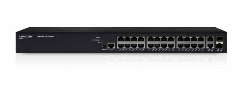 Lancom Systems GS-2326P+. Switch type Managed. Basic switching RJ-45 Ethernet ports type Gigabit Ethernet (10/100/1000), Basic switching RJ-45 Ethernet ports quantity 24. MAC address table 8000 entries. Networking standards IEEE 802.11ad,IEEE 802.1D,IEEE 802.1Q,IEEE 802.1ab,IEEE 802.1p,IEEE 802.1s,IEEE 802.1w,IEEE.... Power over Ethernet (PoE). Rack mounting, Form factor 1U
