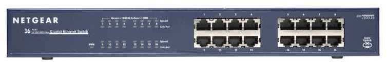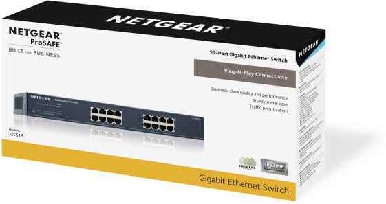 Netgear JGS516. Switch type Unmanaged network switch. Basic switching RJ-45 Ethernet ports quantity 16. Power connector DC-in jack