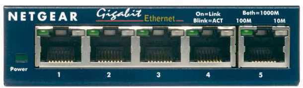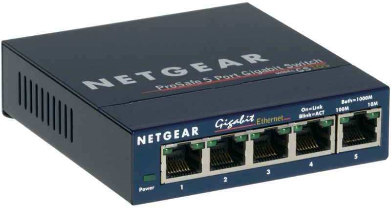 Netgear GS105. Switch type Unmanaged network switch. Basic switching RJ-45 Ethernet ports type Gigabit Ethernet (10/100/1000), Basic switching RJ-45 Ethernet ports quantity 5. Full duplex. MAC address table 4000 entries, Switching capacity 1 Gbit/s. Networking standards IEEE 802.3,IEEE 802.3ab,IEEE 802.3i,IEEE 802.3u. Power connector DC-in jack