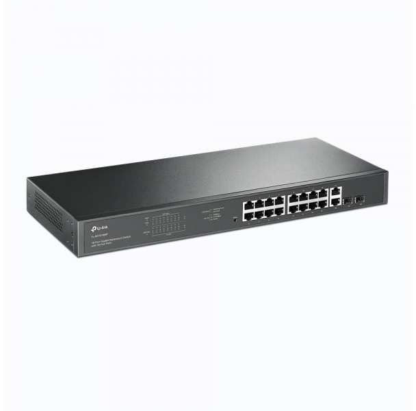 TP-Link 18-Port Gigabit Rackmount Switch with 16 PoE+. Switch type Unmanaged. Basic switching RJ-45 Ethernet ports type Gigabit Ethernet (10/100/1000), Basic switching RJ-45 Ethernet ports quantity 18. MAC address table 8000 entries, Switching capacity 36 Gbit/s. Networking standards IEEE 802.1Q, IEEE 802.1p, IEEE 802.3, IEEE 802.3ab, IEEE 802.3u, IEEE 802.3x. Power over Ethernet (PoE). Rack mounting, Form factor 1U