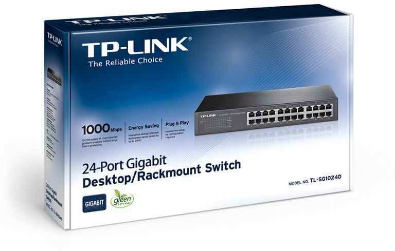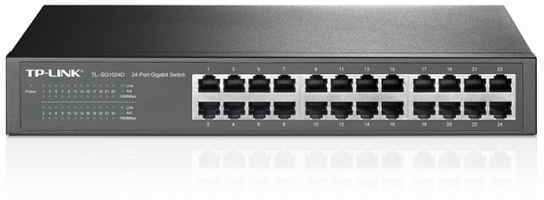 TP-LINK 24-Port Gigabit Desktop/Rackmount Switch. Switch type Unmanaged network switch. Basic switching RJ-45 Ethernet ports type Gigabit Ethernet (10/100/1000), Basic switching RJ-45 Ethernet ports quantity 24. Full duplex. MAC address table 8000 entries, Switching capacity 48 Gbit/s. Networking standards IEEE 802.3ab,IEEE 802.3u,IEEE 802.3x. Power connector DC-in jack. Rack mounting