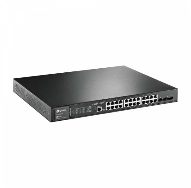 TP-LINK JetStream 28-Port Gigabit L2 Managed Switch with 24-Port PoE+. Switch type Managed, Switch layer L2/L2+. Basic switching RJ-45 Ethernet ports type Gigabit Ethernet (10/100/1000), Basic switching RJ-45 Ethernet ports quantity 24, Console port RJ-45. MAC address table 8000 entries, Switching capacity 56 Gbit/s. Networking standards IEEE 802.3af,IEEE 802.3at. Power over Ethernet (PoE). Rack mounting