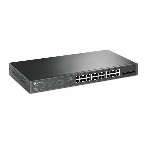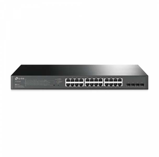 TP-LINK JetStream 28-Port Gigabit Smart PoE Switch with 24-Port PoE+. Basic switching RJ-45 Ethernet ports type Gigabit Ethernet (10/100/1000), Basic switching RJ-45 Ethernet ports quantity 24. MAC address table 8000 entries, Switching capacity 56 Gbit/s. Networking standards IEEE 802.1D,IEEE 802.1Q,IEEE 802.1p,IEEE 802.1s,IEEE 802.1w,IEEE 802.1x,IEEE 802.3ab,IEEE.... Power over Ethernet (PoE). Rack mounting