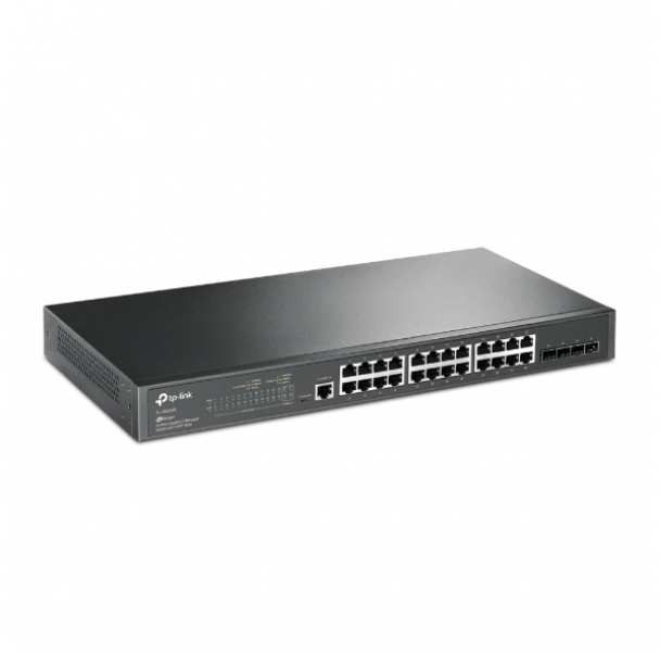 TP-LINK JetStream 24-Port Gigabit L2 Managed Switch with 4 SFP Slots. Switch type Managed, Switch layer L2. Basic switching RJ-45 Ethernet ports type Gigabit Ethernet (10/100/1000), Basic switching RJ-45 Ethernet ports quantity 24, Console port RJ-45/Micro-USB. MAC address table 8000 entries, Switching capacity 56 Gbit/s. Networking standards IEEE 802.1D,IEEE 802.1Q,IEEE 802.1ad,IEEE 802.1p,IEEE 802.1s,IEEE 802.1w,IEEE 802.1x,IEEE 802.3x. Rack mounting, Form factor 1U