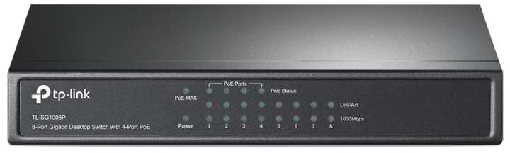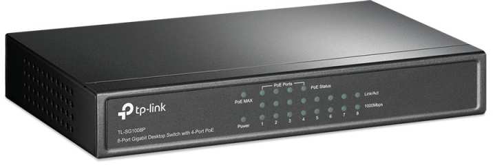 TP-LINK TL-SG1008P. Basic switching RJ-45 Ethernet ports type Gigabit Ethernet (10/100/1000), Basic switching RJ-45 Ethernet ports quantity 8. Full duplex. MAC address table 4800 entries, Switching capacity 16 Gbit/s. Networking standards IEEE 802.11j. DC input voltage 48 V. Power connector DC-in jack. Power over Ethernet (PoE)