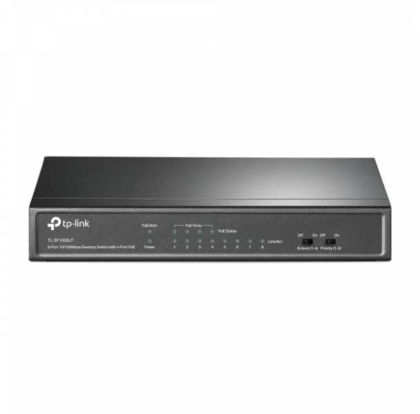 TP-LINK TL-SF1008LP. Switch type Unmanaged. Basic switching RJ-45 Ethernet ports type Fast Ethernet (10/100), Basic switching RJ-45 Ethernet ports quantity 8. MAC address table 2000 entries, Switching capacity 1.6 Gbit/s. DC input voltage 53.5 V. Power connector DC-in jack. Power over Ethernet (PoE)