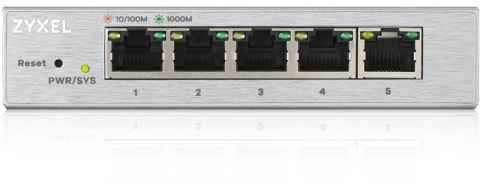 ZyXEL GS1200-5. Switch type Managed. Basic switching RJ-45 Ethernet ports type Gigabit Ethernet (10/100/1000), Basic switching RJ-45 Ethernet ports quantity 5. MAC address table 2000 entries, Switching capacity 10 Gbit/s. Networking standards IEEE 802.1Q,IEEE 802.1p,IEEE 802.3ab,IEEE 802.3az,IEEE 802.3u,IEEE 802.3x,IEEE 802.3z. DC input voltage 5 V, Power connector DC-in jack