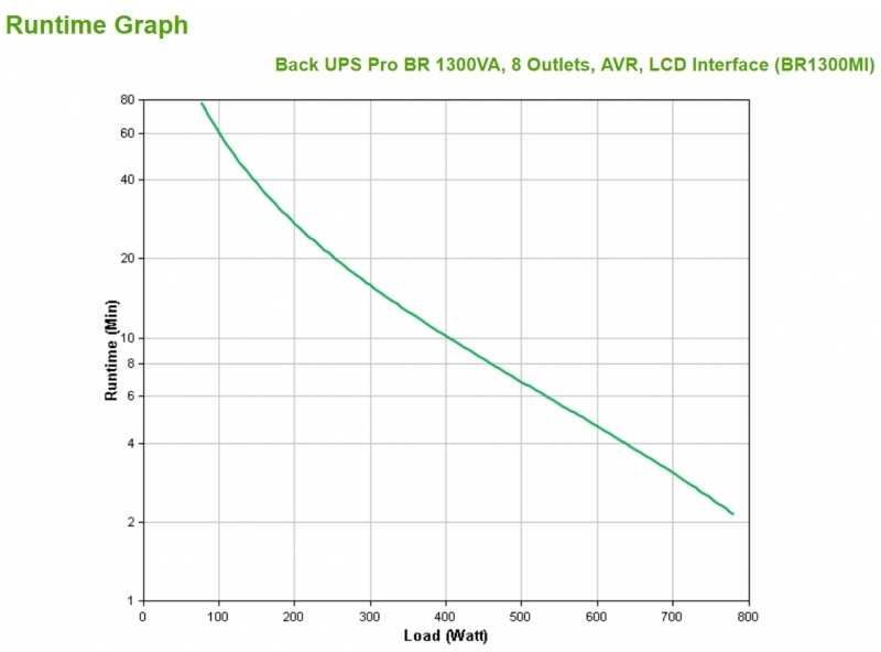 APC BR1300MI. UPS topology Line-Interactive, Output power capacity 1300 VA, Output power 780 W. AC outlet types C13 coupler, Power plug C14 coupler, AC outlets quantity 8 AC outlet(s). Battery technology Sealed Lead Acid (VRLA), Battery life (max) 5 year(s), Battery recharge time 16 h. Form factor Tower, Product colour Black, Cable length 1.83 m. Width 250 mm, Depth 382 mm, Height 100 mm