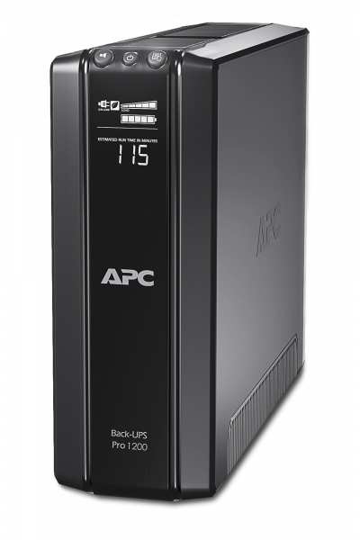 APC Back-UPS Pro. UPS topology Line-Interactive, Output power capacity 1200 VA, Output power 720 W. AC outlet types Type F. Battery technology Sealed Lead Acid (VRLA), Battery capacity 187 VAh, Typical backup time at full load 5.4 min. Product colour Black, Cable length 1.83 m, Display LCD. Width 112 mm, Depth 382 mm, Height 301 mm