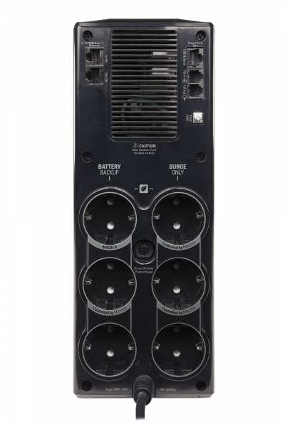 Other features Nominal output voltage 230 V Nominal input voltage 230 V Ports & interfaces Number of type F outputs 6 AC outlet types Type F USB port N Design Product colour Black Cable length 1.83 m Certification BSI 1363, CE, NEMKO, REACH LED indicators Y Energy Star certified Y RoHS compliance Y Display LCD Weight & dimensions Depth 382 mm Weight 13 kg Height 301 mm Width 112 mm Battery Battery recharge time 8 h Battery capacity 187 VAh Typical backup time at full load 5.4 min Battery technology Sealed Lead Acid (VRLA) Automatic battery test Y Typical backup time at half load 15.7 min Cold start Y Features Waveform Sine Input frequency 50/60 Hz Output power capacity 1200 VA Output power 720 W Output frequency regulation 50/60 Hz Input operation voltage (min) 156 V Surge protection Y Hold time (max) 12 ms UPS topology Line-Interactive Maximum current 10 A Audible alarm(s) Y Noise level 45 dB Surge protection features Digital Subscriber Line (DSL),Fax,Modem,Network Surge energy rating 441 J Input operation voltage (max) 300 V Efficiency 98.8 % Automatic Voltage Regulation (AVR) Y Hold time (min) 10 ms Operational conditions Storage relative humidity (H-H) 0 - 95 % Storage temperature (T-T) -15 - 45 °C Non-operating altitude 0 - 15000 m Operating temperature (T-T) 0 - 40 °C Operating relative humidity (H-H) 0 - 95 % Operating altitude 0 - 3000 m Packaging data Warranty card Y Package depth 490 mm Manual Y Bundled software PowerChute Personal Edition Package height 390 mm Cables included Phone (RJ-11),USB cable Software CD Y Package width 235 mm Package weight 13.8 kg