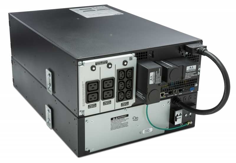 APC Smart-UPS On-Line. UPS topology Double-conversion (Online), Output power capacity 6000 VA, Output power 6000 W. AC outlet types C13 coupler,C19 coupler, Power plug Terminal, AC outlets quantity 10 AC outlet(s). Battery technology Sealed Lead Acid (VRLA), Battery capacity 902 VAh, Typical backup time at full load 2.5 min. Form factor Rackmount, Product colour Black, Rack capacity 4U. Width 432 mm, Depth 719 mm, Height 174 mm