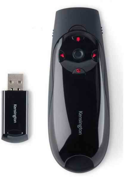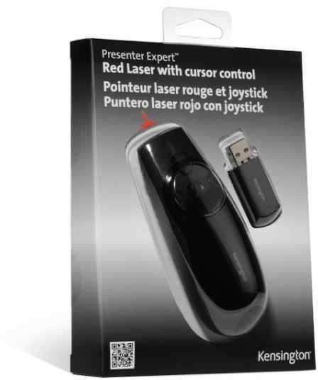 Kensington Presenter Expert. Red laser with cursor control. Wireless technology RF, Frequency band 2.4 GHz, Wireless range 50 m. Wireless receiver interface USB, Receiver type Standard. Product colour Black, Presenter functions Laser pointer, Remote control, Laser pointer colour Red