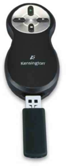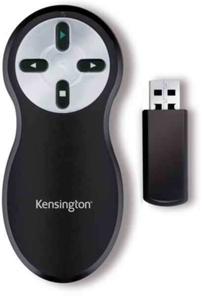 Kensington Wireless Presenter. Wireless technology RF, Frequency band 2.4 GHz, Wireless range 20 m. Battery type AAA. Wireless receiver interface USB, Receiver type Standard. Product colour Black, Presenter functions Remote control