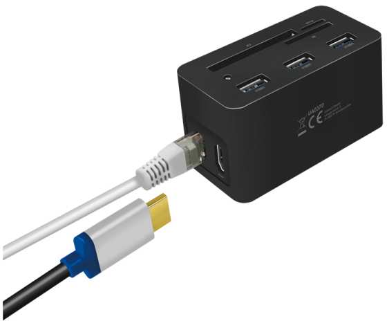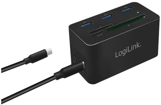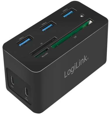 LogiLink UA0370. Connectivity technology Wired, Host interface USB 3.2 Gen 1 (3.1 Gen 1) Type-C, USB Power Delivery up to 60 W. Ethernet LAN data rates 10,100,1000 Mbit/s. Product colour Black, Compatible memory cards CF, MicroSD (TransFlash), SD, Data transfer rate 5 Gbit/s. Width 46 mm, Depth 41 mm, Height 86 mm. Package width 112 mm, Package depth 50 mm, Package height 110 mm