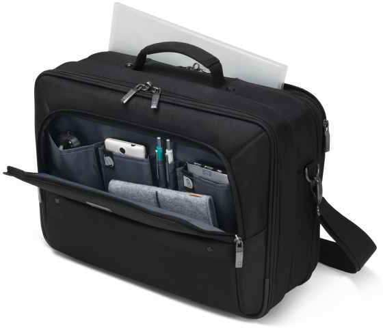 Dicota Eco Multi Twin SELECT 14-15.6. Case type Messenger case, Maximum screen size compatibility 39.6 cm (15.6), Number of front pockets 2, Carrying handle(s), Shoulder strap. Weight 1.3 kg. Surface coloration Monotone, Product colour Black