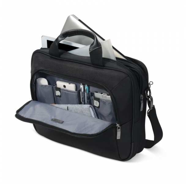 Dicota Eco Top Traveller SELECT. Case type Messenger case, Maximum screen size compatibility 39.6 cm (15.6), Number of front pockets 1, Carrying handle(s), Shoulder strap. Weight 800 g. Surface coloration Monotone, Product colour Black