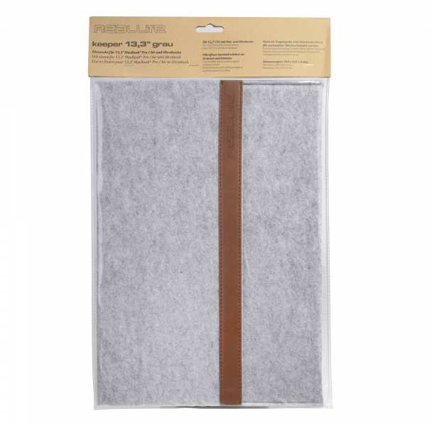 Ultron RealLife keeper 13,3 (33 cm), felt bag. Case type Sleeve case, Maximum screen size compatibility 33.8 cm (13.3). Weight 235 g. Surface coloration Monotone, Product colour Gray