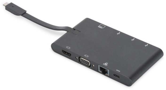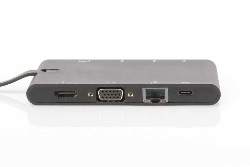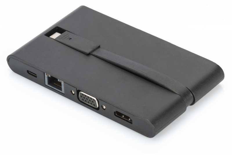 Digitus Universal Travel Docking Station, USB Type-C. Connectivity technology Wired, Host interface USB 3.2 Gen 1 (3.1 Gen 1) Type-C, USB Power Delivery up to 100 W. Ethernet LAN data rates 10,100,1000 Mbit/s. Product colour Black, Compatible memory cards MMC, MicroSD (TransFlash), MicroSDXC, SD, Data transfer rate 5 Gbit/s. Maximum resolution 3840 x 2160 pixels. Power source type USB