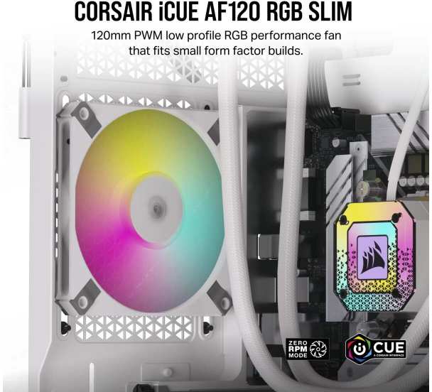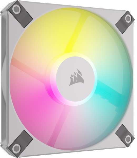 Corsair CO-9050164-WW. Type Fan, Fan diameter 12 cm, Rotational speed (min) 600 RPM, Rotational speed (max) 2000 RPM, Noise level (high speed) 27.5 dB, Maximum airflow 56.3 cfm, Minimum air pressure 0.2 mmH2O, Maximum air pressure 1.9 mmH2O, Bearing type Fluid Dynamic Bearing (FDB). Width 120 mm, Depth 15 mm, Height 120 mm. Product colour White