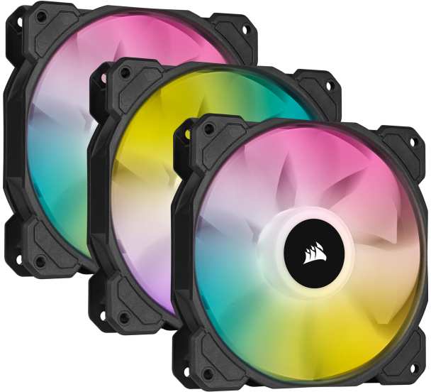 Corsair SP120 RGB ELITE. Type Fan, Fan diameter 12 cm, Rotational speed (min) 400 RPM, Rotational speed (max) 1500 RPM, Noise level (low speed) 18 dB, Maximum airflow 47.7 cfm, Maximum air pressure 1.46 mmH2O, Bearing type Hydraulic. Voltage 6 - 13.2 V. Product colour Black