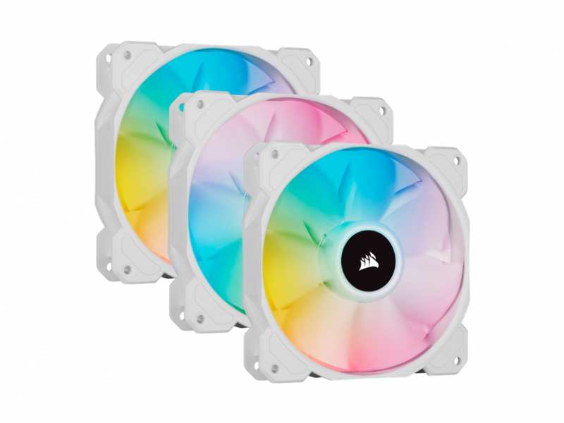 Corsair SP140 RGB ELITE. Type Fan, Fan diameter 14 cm, Rotational speed (min) 300 RPM, Rotational speed (max) 1200 RPM, Noise level (high speed) 27 dB, Maximum airflow 68.11 cfm, Maximum air pressure 1.66 mmH2O, Bearing type Hydraulic. Voltage 6 - 13.2 V. Product colour White
