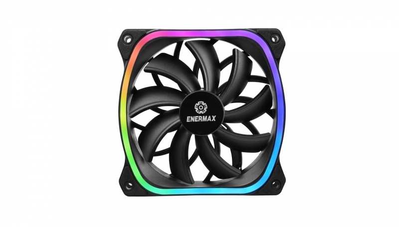 Enermax SquA RGB. Suitable for Computer case, Type Fan, Fan diameter 12 cm. Number of fans 3 fan(s), Illumination colour Red/Green/Blue. Fan connector 4-pin. Rated voltage 12 V, LED voltage 5 V, Rated current 0.21 A. Fan dimensions (W x D x H) 120 x 26 x 120 mm, Package width 133 mm, Package depth 160 mm