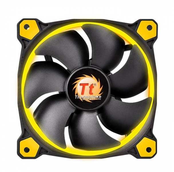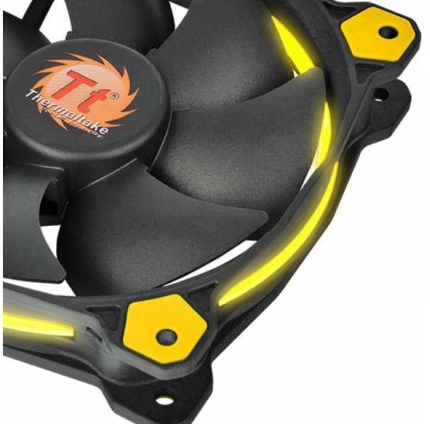 Thermaltake Riing 14. Suitable for Computer case, Type Fan, Fan diameter 14 cm. Product colour Black,Yellow, Illumination colour Yellow. Power consumption (typical) 3 W, Voltage 12 V, Rated current 0.25 A. Width 140 mm, Depth 140 mm, Height 25 mm