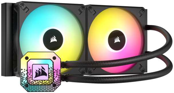 Corsair CW-9060069-WW. Type Liquid ?ooling kit, Fan diameter 14 cm, Rotational speed (min) 500 RPM, Rotational speed (max) 1700 RPM, Noise level (low speed) 5 dB, Noise level (high speed) 33.8 dB, Maximum airflow 89 cfm, Minimum air pressure 0.16 mmH2O, Maximum air pressure 2 mmH2O. Width 56 mm, Depth 56 mm. Product colour Black