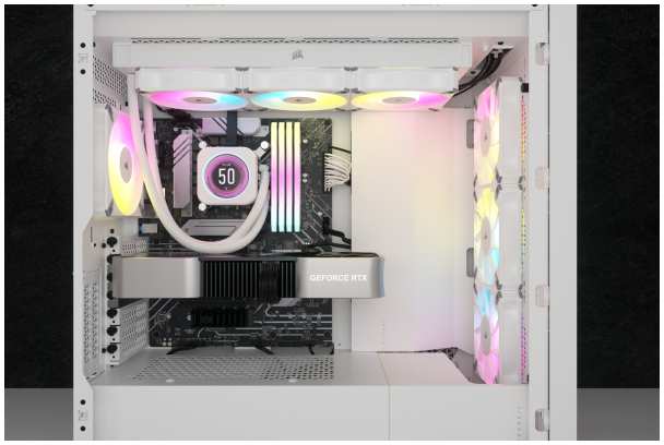 Corsair CW-9060077-WW. Type Liquid ?ooling kit, Fan diameter 12 cm, Rotational speed (min) 550 RPM, Rotational speed (max) 2100 RPM, Maximum airflow 65.57 cfm, Minimum air pressure 0.17 mmH2O, Maximum air pressure 2.68 mmH2O. Product colour White
