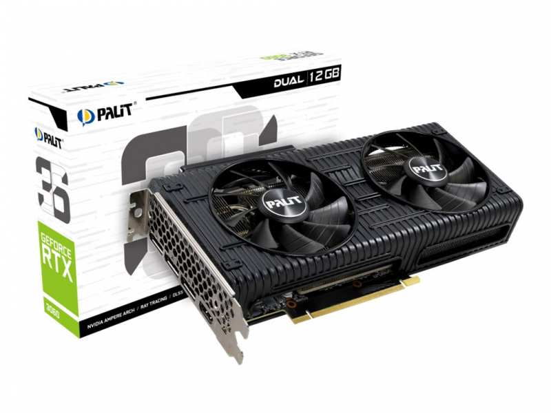 Palit NE63060019K9-190AD. Graphics processor family NVIDIA, Graphics processor GeForce RTX 3060, Processor frequency 1320 MHz. Discrete graphics adapter memory 12 GB, Graphics adapter memory type GDDR6, Memory bus 192 bit. Maximum resolution 7680 x 4320 pixels. DirectX version 12.0, OpenGL version 4.6. Interface type PCI Express x16 4.0. Cooling type Active, Number of fans 2 fan(s), Illumination colour Blue, Green, Red