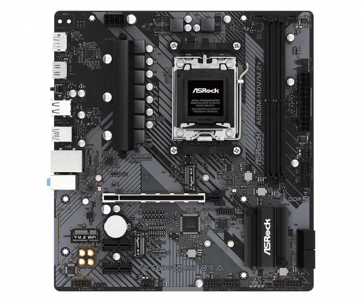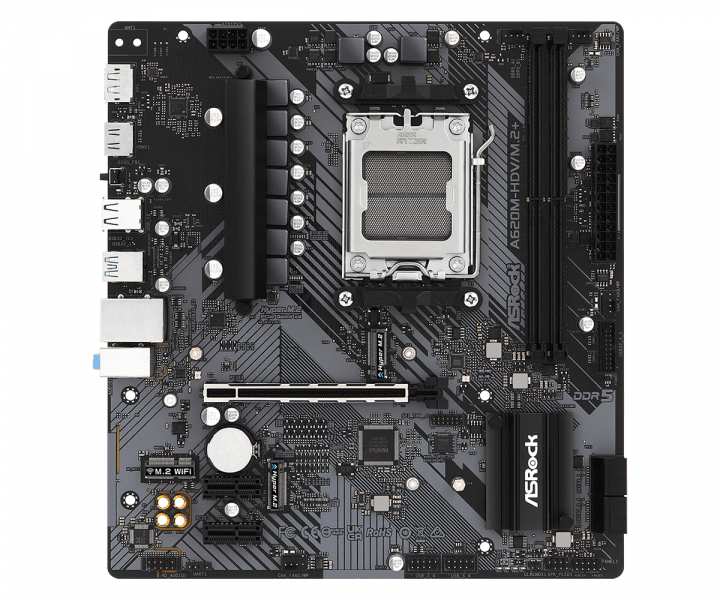 Asrock A620M-HDV/M.2+. Processor manufacturer AMD, Processor socket Socket AM5, Compatible processor series AMD Ryzen 5, AMD Ryzen 7. Supported memory types DDR5-SDRAM, Maximum internal memory 64 GB, Memory slots type DIMM. Supported storage drive interfaces M.2, SATA III, RAID levels 0, 1, 10. Ethernet interface type Gigabit Ethernet, LAN controller Realtek RTL8111H. Component for PC, Motherboard form factor micro ATX, Motherboard chipset family AMD