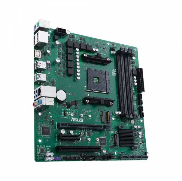 ASUS PRO B550M-C/CSM. Processor manufacturer AMD, Processor socket Socket AM4, Compatible processor series AMD Athlon, AMD Ryzen 3, AMD Ryzen 5, AMD Ryzen 7, 3rd Generation AMD Ryzen 9. Supported memory types DDR4-SDRAM, Maximum internal memory 128 GB, Memory slots type DIMM. Supported storage drive interfaces SATA III, Supported storage drive types HDD & SSD. Ethernet interface type Gigabit Ethernet, LAN controller Realtek RTL8111H. Component for PC, Motherboard form factor micro ATX, Motherboard chipset family AMD