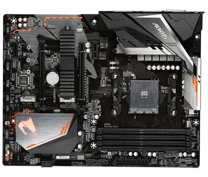 Gigabyte B450 AORUS Elite V2. Processor manufacturer AMD, Processor socket Socket AM4, Compatible processor series AMD Ryzen 3, 2nd Generation AMD Ryzen 3, AMD Ryzen 3 3rd Gen, AMD Ryzen 5, 2nd Generation AMD.... Supported memory types DDR4-SDRAM, Memory slots type DIMM, Supported memory clock speeds 2133,2400,2667,2933 MHz. Supported storage drive interfaces M.2, Serial ATA III, Supported storage drive types HDD & SSD. Parallel processing technology support 2-Way CrossFireX,Quad-GPU CrossFireX. Ethernet interface type Gigabit Ethernet