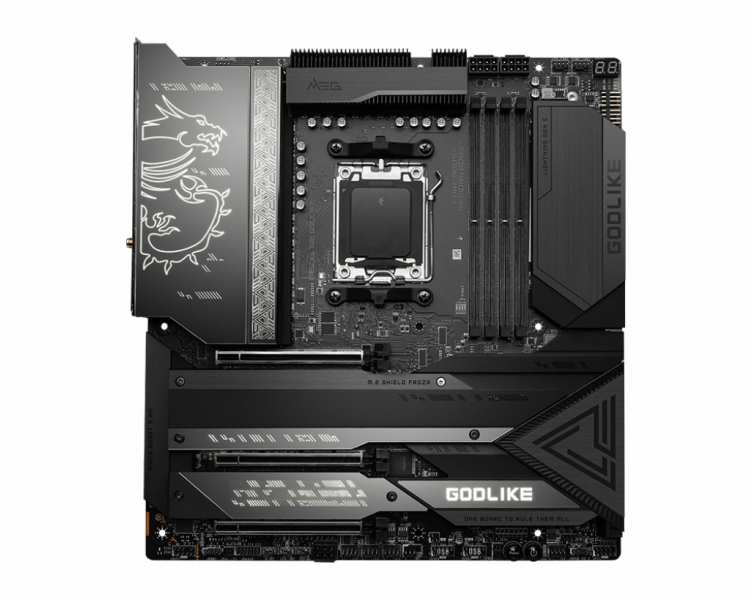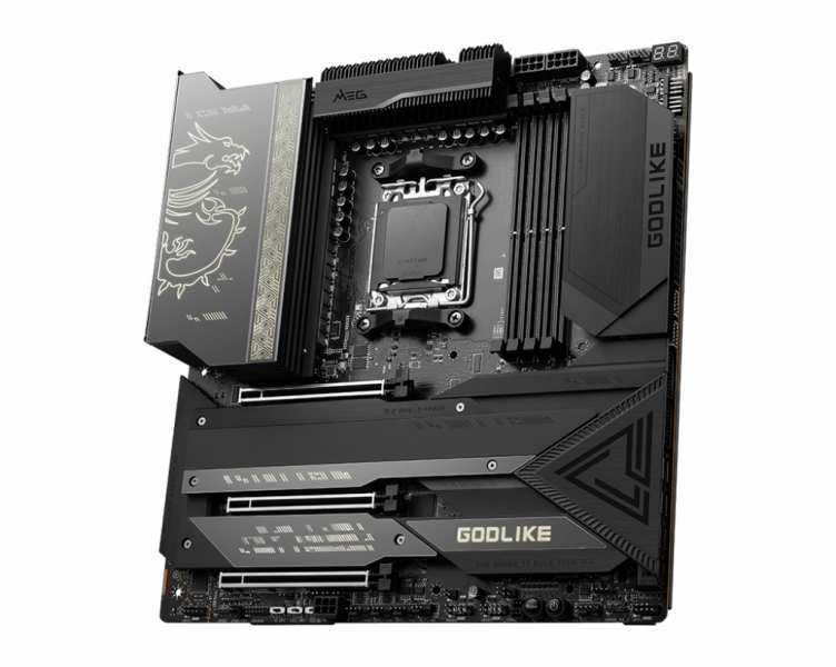 MSI MEG X670E GODLIKE. Processor manufacturer AMD, Processor socket Socket AM5. Supported memory types DDR5-SDRAM, Maximum internal memory 128 GB, Memory slots type DIMM. Supported storage drive interfaces M.2, SATA III, RAID levels 0, 1, 10. Parallel processing technology support SLI. Ethernet interface type 2.5 Gigabit Ethernet, 10 Gigabit Ethernet, LAN controller Intel I225-V, Marvell AQtion AQC113C, Top Wi-Fi standard Wi-Fi 6E (802.11ax)