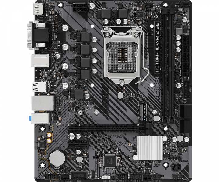 Asrock H510M-HDV/M.2 SE. Processor manufacturer Intel, Processor socket LGA 1200 (Socket H5). Supported memory types DDR4-SDRAM, Maximum internal memory 64 GB, Memory slots type DIMM. Supported storage drive interfaces PCI Express 3.0, SATA III, Supported storage drive types HDD & SSD, RAID levels 0, 1, 5, 10. HDMI version 1.4/2.0, USB connector type USB Type-A. Ethernet interface type Gigabit Ethernet, LAN controller Realtek 8111H
