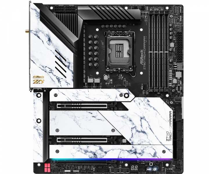 Asrock Z790 Taichi Carrara. Processor manufacturer Intel, Processor socket LGA 1700, Compatible processor series Intel® Core i5, Intel® Core i7, Intel® Core i9. Supported memory types DDR5-SDRAM, Maximum internal memory 128 GB, Memory slots type DIMM. Supported storage drive interfaces M.2, SATA III, Supported storage drive types HDD & SSD, RAID levels 0, 1, 5, 10. Ethernet interface type 2.5 Gigabit Ethernet, LAN controller Killer E3100G, Top Wi-Fi standard Wi-Fi 6E (802.11ax). Component for PC, Motherboard form factor Extended ATX, Motherboard chipset family Intel
