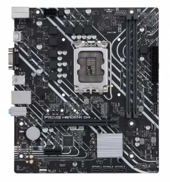 ASUS PRIME H610M-K D4. Processor manufacturer Intel, Processor socket LGA 1700, Compatible processor series Intel® Celeron®, Intel® Core i3, Intel Core i5, Intel Core i7, Intel Core i9, Intel®.... Supported memory types DDR4-SDRAM, Maximum internal memory 64 GB, Memory slots type DIMM. Supported storage drive interfaces M.2,SATA, Supported storage drive types HDD & SSD. Ethernet interface type Gigabit Ethernet. Component for PC, Motherboard form factor micro ATX, Motherboard chipset family Intel